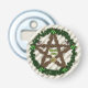Una estrella de pinecones rodeada por una corona de abetos salpicada de sartén y coronada con un arco dorado, se une con un par de hadas yuletitas para desear a todos un Yule bendecido.