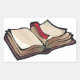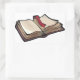Este diseño es un libro abierto. El libro está abierto con un marcador de cinta roja. Este diseño de libros abiertos se ve muy bien en este Pegatina