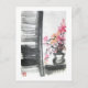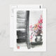 Pintura original del pincel chino del artista Ren Adams. Una cristalera de madera revela una extraña planta silvestre que parece sobrepasar su olla.