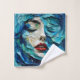 Keywords: abstract impasto painting, tactile texture art, female face artwork, ocean waves background, blue and green hues, red lips painting, oil on canvas, contemporary abstract art, textured surface painting, modern expressionism.