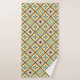 Abstract geometric pattern with diamond shapes in pastel colors. Each contains a star-like motif in teal, orange, or brown. Retro and symmetrical design.