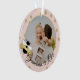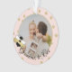 Anuncie a su bebé para que esté en la abuela con esta adorable foto de "Abuela a abeja" adornada con rosa, blanco y oro. Ornamento de abejas de burbujas con puntos dorados aleatorios, color de fondo editable y foto. En el reverso de la adorno, un apellido y fecha de vencimiento o edite para añadir tu propio mensaje especial a la abuela para ser.