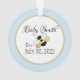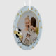 Anuncie a su bebé para que esté en la abuela para estar con esta adorable foto de "Abuela a Abeja" adornada en azul, blanco y oro. Ornamento de abejas de burbujas con puntos dorados aleatorios, color de fondo editable y foto. En el reverso de la adorno, un apellido y fecha de vencimiento o edite para añadir tu propio mensaje especial a la abuela para ser.