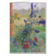 Un jardín a la antigua con girasoles y hollyhocks y un viejo caballero al fondo. Bonito arte vintage del artista sueco Carl Larsson.