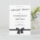 boda blanco y negro personalizado ensayando invitaciones a la cena con un texto de arco negro y personalizable