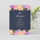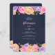 Una invitación azul marino con bordes de abundantes flores en rosa, lavanda y oro. <a href="http://www.freepik.com">Diseñada por Freepik</a>). <br/>() La tarjeta es fácil de personalizar con su redacción, fuente, color de fuente y elección de seis tipos de papel.<br/>() ¿No es exactamente lo que estás buscando? Todos nuestros productos pueden ser personalizados diseñados para satisfacer sus necesidades sin coste adicional.<br/>() Simplemente contáctenos a askcottonlamb@gmail.com<br/>() Productos de coordinación disponibles: