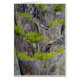 Imagen de los árboles que crecen por la cara de un acantilado de pizarra, un poco abstracto que hace difícil juzgar el tamaño de los árboles.