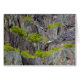 Imagen de los árboles que crecen por la cara de un acantilado de pizarra, un poco abstracto que hace difícil juzgar el tamaño de los árboles.