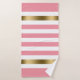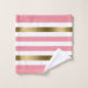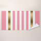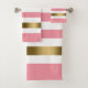 Patrón de rayas rosas y blancas con acentos de rayas doradas.