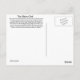 Una postal de un bello perfil de búho con un fondo negro. En la parte posterior de la tarjeta se proporcionan algunos datos sobre el ave.