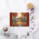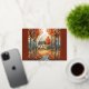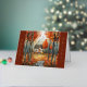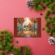 Esta imagen retrata una acogedora casa de campo blanca situada en el corazón de un vibrante bosque de otoño. Los árboles, con su naranja brillante y sus hojas rojas, rodean la casa y crean un ambiente cálido e íntimo. Un camino de piedra atraviesa el césped dorado y conduce a la puerta principal de la casa, acentuada por la decoración otoñal. Un penacho de humo sale de la chimenea, lo que sugiere un fuego caliente dentro. El lugar es tranquilo y acogedor, con pájaros volando y pequeños toques de naturaleza que realzan el encanto.
