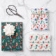 Un juego de papel de envolver para Navidades festivos con sudaderas vacacionales, medias y gorras de invierno.