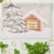 Es un día gris y nevado en el exterior, pero es acogedor en tu pequeña cabaña. Personalice esta hermosa escena de invierno con el nombre de su elección...visible en la ventana de la pequeña cabaña.