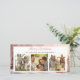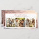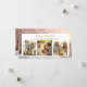 El diseño de esta tarjeta de Navidades presenta una pintoresca escena invernal con tres casas rosas cubiertas de nieve. Las casas están bien iluminadas desde el interior, lo que da un agradable resplandor a través de las ventanas. Los árboles cubiertos de nieve rodean las casas, lo que realza el ambiente festivo y sereno. La luz dorada está ligeramente borrosa, lo que crea un entorno mágico y tranquilo. La parte delantera de la tarjeta incluye tres ranuras para fotos para subir fotos personales de la familia, añadiendo un toque personalizado. La frase "Feliz Navidad" se muestra de manera elegante, complementando la alegría y calidez de las vacaciones de la tarjeta.