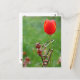 Acorn elf como jardinero tulipán - postal de primavera floral - postal graciosa posttravesía