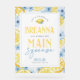 Bienvenido a sus huéspedes con este magnífico cartel de bienvenida acrílico. Personalice con su invitado el nombre, tipo de evento y fecha de honores. Parte de nuestra colección de ducha de novia "Main Squeeze". Cuenta con hermosos limones de color amarillo y flores florales azules.