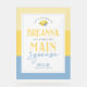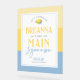 Bienvenido a sus huéspedes con este magnífico cartel de bienvenida acrílico. Personalice con su invitado el nombre, tipo de evento y fecha de honores. Parte de nuestra colección de ducha de novia "Main Squeeze". Cuenta con un hermoso limón color agua amarillo y una flor floral azul.