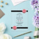 Este diseño presenta elegantes flores rosadas. Las rosas de color rosa floral, combinadas con la elegante imagen de cinta negra, crean un sofisticado y sencillo borde enmarcando la redacción. Los tonos rosas de las flores rosas contrastan con la cinta negra y la redacción crea un estilo elegante de moda. El lado inverso imita al otro lado. Elegante diseño de invitación a la boda con elementos modernos. También están disponibles artículos de papelería para bodas y otros formatos de invitación para bodas.
