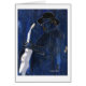 Una pintura resumida de acrílico en sobre todo azul de un músico de los azules que toca una guitarra blanca