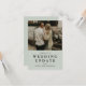 ¿Necesita cancelar o posponer su boda o evento debido a un desastre desafortunado? ¿Pandemia? Hurricane Supadupas? ¿Muerte en la familia? Envíe un aviso a sus amigos y familiares con esta sencilla y elegante tarjeta fotográfica. En la parte trasera se incluye un gran bloque de texto personalizado con la redacción sugerida. También hay espacio para que lo firme. La parte frontal tiene un fondo verde sabio con texto negro. Los colores se pueden editar haciendo clic en el personalizar. Perfecto para novias y parejas de coronavirus.