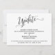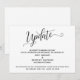 La distinción de este conjunto se debe a la elaborada fuente de escritura con giros utilizada para las frases de acento. En el caso de que necesite informar a sus invitados que su boda se ha pospuesto, esta tarjeta ofrece una opción elegante. En esta pieza, se utilizó la fuente de caligrafía para crear un gráfico que representa la palabra "Actualización". Utilice los campos del modelo para agregar sus datos personales y hacer que este diseño sea suyo. El fondo se puede cambiar a cualquier color que prefiera. Por favor, comuníquese con nosotros para cualquier solicitud especial o para obtener ayuda para personalizar. // 98 //