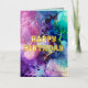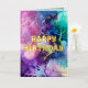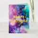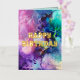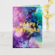 Una fantástica tarjeta de felicitación por Relieve metalizado de cumpleaños feliz en un fondo de arcoiris acuarela.