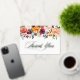 Envíe gracias a los invitados con esta tarjeta de agradecimiento de graduación de personalizable. Cuenta con un jardín acuático de flores naranjas, burdeos, blancas y rosas con acentos verdes. Personalice esta tarjeta de agradecimiento floral de otoño añadiendo los detalles del evento. Esta tarjeta de agradecimiento de Relieve metalizado dorado es perfecta para graduación en otoño, bodas, duchas de novias, duchas para bebés y otros eventos.