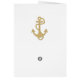 El diseño de esta tarjeta se presenta en la parte delantera, una pintura acuática muy agradable de un barco o barco, subiendo por las agitadas olas de un maravilloso día caluroso de verano. Este velero me recuerda a un barco pirata, navegando por los grandes mares. El océano está agitado, ¿tal vez se está gestando una tormenta? Los colores del agua son un verde azul bonito, dorado amarillo, marrón marrón marrón marrón y gorras blancas. El cielo está cubierto de tonos pastel o pálidos en los colores del mar, con nubes grises blancas. En el interior izquierdo, un patrón azul bonito. Este fondo en tonos azules tiene un aspecto rústico y desgastado. Y en el interior derecho, en el fondo hay una onda fresca de agua en colores oscuros de azul oscuro y azul claro. En la parte de atrás, un ancla 3D, con un oro amarillo bonito, para completar este aspecto de la vida oceánica.