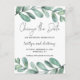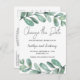 Es posible que deba cambiar la fecha de su boda debido a circunstancias imprevistas, no se preocupe, lo tenemos cubierto con estas tarjetas postales de "cambiar la fecha" modernas y muy elegantes. El diseño presenta eucalipto dibujado a mano con fuentes de escritura modernas y texto de plantilla fácil de personalizar.