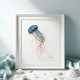 Perfecto para dormitorios, espacio de oficinas y zonas de estar en su casa costera de playa. Esta impresión muestra una reproducción de mi arte original de medusas acuarelas pintadas a mano en tonos azules y rojos con un toque de naranja. Para ver más criaturas del mar tropical en Victoria Grigaliunas de Do Tell A Belle visite www.zazzle.com/dotellabelle