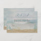 Playa del océano con peces estrella y plantas florales azules en la arena para la boda RSVP
