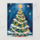 Tarjeta postal de vacaciones de acuarela del árbol de Navidad alegre