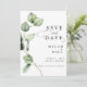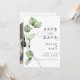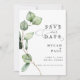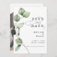Esta hermosa tarjeta Save the Date cuenta con una fantástica combinación de acuarela de eucalipto, personalizada con sus detalles y foto. Un clásico tipo de letra serif se acentúa con nuestra exclusiva y elegante caligrafía. Perfecto para su boda de boho, jardín o vegetación.