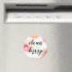 Con este práctico imán de lavavajillas con tipografía de guijarros negros sobre fondo floral rosa, naranja, verde y blanco, no hay duda del estado de los platos.