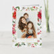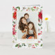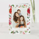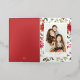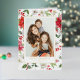¡Felices Fiestas! Envía cálidos saludos navideños a tus familiares y amigos con esta tarjeta de Navidad personalizable con lámina de oro. Cuenta con un patrón botánico de acuarela de una poinsettia roja, bayas invernales, acebos, narcisos y acentos de follaje. Personaliza esta tarjeta navideña de acuarela agregando tus propios detalles. Esta tarjeta navideña floral está disponible en una variedad de papeles.