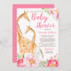 Adorables girafas para la ducha de bebé. El diseño presenta una hermosa jirafa de color agua madre y bebé con hermosas flores. Personalice fácilmente utilizando los campos de plantilla en línea.