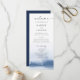 Este moderno programa de bodas de color azul acuático es perfecto para un boda contemporáneo y elegante. La colección de diseño minimalista, clásico y elegante presenta trazos de pincel de color agua en tonos bonito. Incluya el nombre de la novia y el novio, la fecha y ubicación del boda, el mensaje de agradecimiento, el orden de servicio, la fiesta de novias y un monumento opcional "en memoria amorosa".