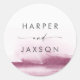 Estos modernos sellos para sobres bodas de color rojo acuático son perfectos para un boda contemporáneo y elegante. La colección de diseño minimalista, clásico y elegante presenta trazos de pincel de color agua en tonos bonito. Personalice la etiqueta con los nombres de la novia y del novio.