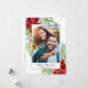 El diseño de la tarjeta de Navidad de las fiestas temáticas presenta vegetación pintada a mano con acuarela y hermosas poinsettias rojas en acuarela. Su imagen está enmarcada de manera sencilla y el diseño está acentuado con motas de oro en acuarela y bayas de acebo a juego. #Navidad #Fiestas #TarjetasDeNavidad