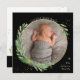 El diseño de la tarjeta de Navidad con temática de fiestas incluye vegetación pintada a mano en un círculo de oro sobre fondo negro. Su imagen está enmarcada de manera sencilla y el diseño está acentuado con motas de oro en acuarela y bayas de acebo a juego. #Navidad #Fiestas #TarjetasDeNavidad