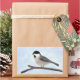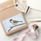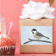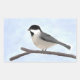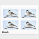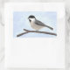 Pegatina con mi original ilustracion de acuarela digital de un pollo con cubierta negra encaramado en una rampa sin hojas contra un cielo azul pálido.