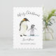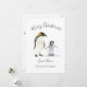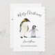 Feliz y brillante, Feliz Navidad. Pingüinos acuarelas, carta tradicional. Por favor, personalícelo con sus detalles.