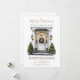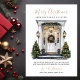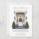 Esta tarjeta de vacaciones navideña Watercolor Front Door Merry con una puerta principal decorada festivamente con arbustos de pino y árboles y una corona de flores sería perfecta para enviarle a sus amigos y familia. El mensaje es personalizable y las plantillas son muy fáciles de usar. En segundos puedes ver tus fabulosas tarjetas de Navidad.