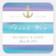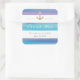 Personalizar estos elegantes y elegantes Modas Náuticas Gracias Favor Pegatinas. Colores de agua azul océano y diseño de rayas blancas, establecido como una plantilla para una fácil personalización. Por favor, tenga en cuenta que el oro de este diseño, sobre ancla dorada, no es un Relieve metalizado de oro, es una impresión de color. El color del texto también es personalizable, los elementos dorados se pueden mover o borrar. Todos los demás productos a juego se pueden encontrar en una colección de Bodas náuticos con rayas azules.
