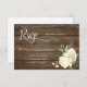 Elegante, delicado con un moderno diseño boda RSVP. Acuarela (acuarela) RSVP floral pintada a mano, respuesta insertar cartas con tonos rosa rubor, melocotón, beige, champán blanco sobre fondo rústico de madera. Letras topográficas de guiones. La parte trasera de la tarjeta tiene nombres completos de novia y novio. Añádalos con sus invitaciones formales.