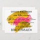 Esta hermosa tarjeta de 5" x 7" ¿Serás mi dama de honor? Esto es mejor para la novia. Si estás buscando pedirle a alguien que sea tu dama de honor para tu futuro boda, entonces por qué no eliges estas tarjetas de dama de honor. Esta tarjeta de invitación personalizada hará que su amigo, primo hermano, sobrino, hija o cualquier otra persona que elija sienta ese especial extra. Esta invitación se personaliza fácilmente haciendo clic en el botón personalizar de la imagen donde podrá cambiar el texto, la fuente y el tamaño. Puede invitar a sus mejores amigos con estilo con estas elegantes invitaciones. Es apto para el chica floral, criada de honor o matrona de honor. Envíenles esta tarjeta de dama de honor.