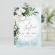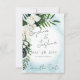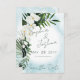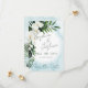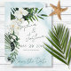 Esto ahorra el diseño de la tarjeta de fecha con hermosas y exuberantes plantas tropicales y flores blancas sobre un suave fondo caribeño de color azul acuático. Perfecto para el destino o la boda en la playa. Creado por Simply Farmhouse Press.