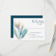 La tarjeta del recinto de respuesta del boda tropical de moda tiene un borde lateral de flores de acuarela con vegetación y vegetación botánica exuberante. Personalice con sus detalles de rsvp en escritura con letra a mano moderna y letras sans serif tradicionales. Responder a la tarjeta de vuelta a color verde azul marino rico sólido. Perfecto para bodas en el jardín, el verano, el destino o la playa. Para ver más diseños como este, visite www.zazzle.com/vginvites
