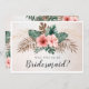 Elegante diseño de tarjeta "serás mi dama de honor" con flores polvorientas de color rosa y hojas tropicales sobre un fondo de color crema. Elementos coincidentes disponibles.