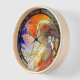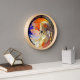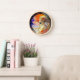 Un reloj de pared vibrante que muestra una pintura acuarela de un chica.